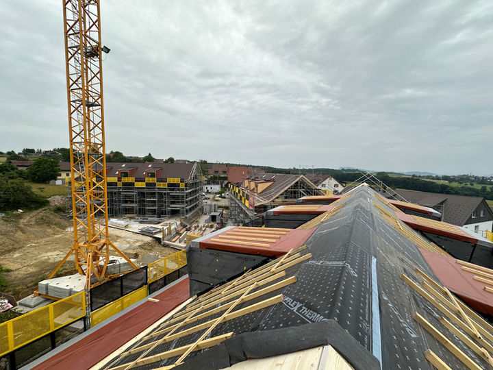 Fassade, Bedachung und die Dachkonstruktion werden durch die Bergauer Holzbau GmbH erstellt.